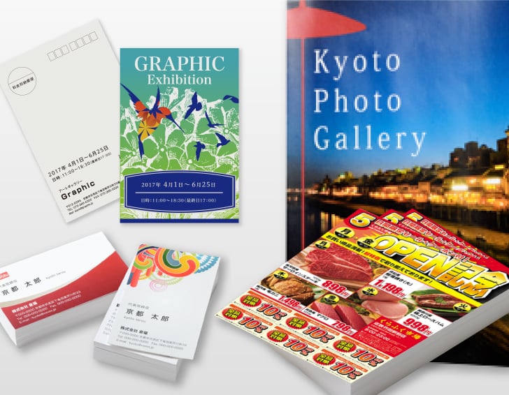 - 各種カード印刷(名刺印刷、ポストカード印刷・はがきDM印刷、A・B判カード印刷)、チラシ・フライヤー印刷、ポスター印刷、冊子印刷その他商品でも納期タイプを短縮しております。