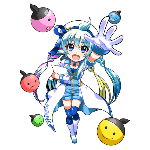 明るく目を引く色遣いで非常にPOP。そのままアニメキャラクターとして使えそうで、完成度の高さは応募作品の中でもピカイチ。元気いっぱいの表情、ポージングで、明るくサポートしてくれそう!! 周りに浮かぶキチリたちとの相性も◎