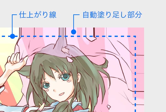 これを防ぐため、同人誌かんたん入稿では塗り足しを自動で作成します。