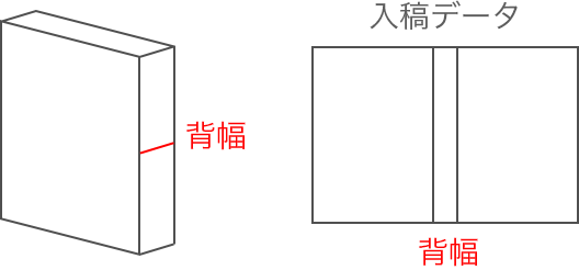 表紙のみ「背幅」を作成する必要がありますので、下記を参考に背幅を計算し、データのサイズを調整します。