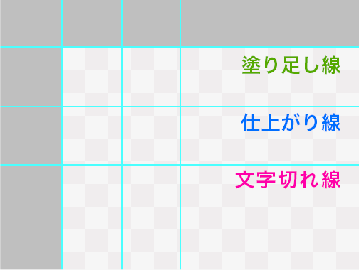 周囲の透明表示された部分が塗り足しとなります。