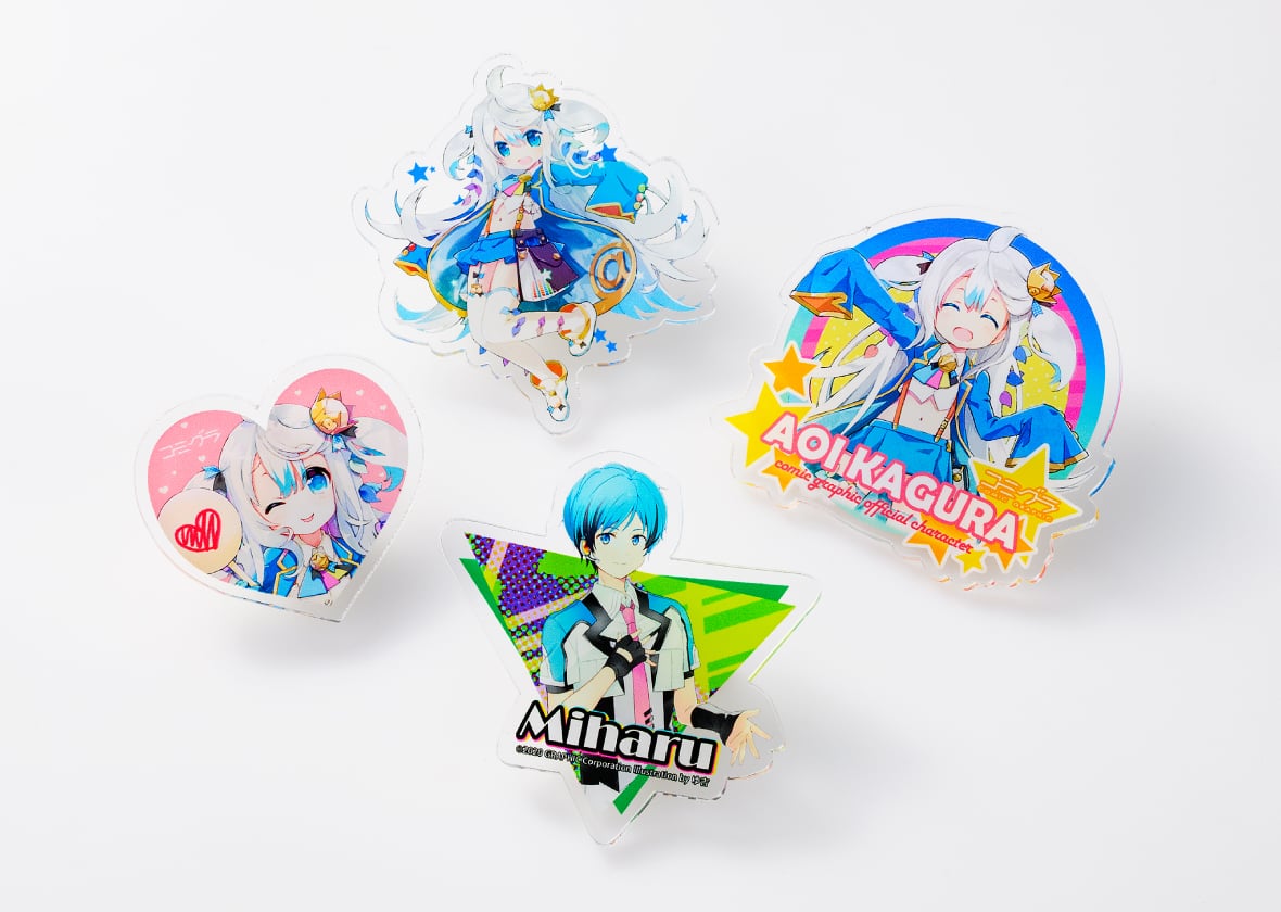 滑らかでキレイなカット面。自由な形で高品質プリントできるアクリルバッジ。