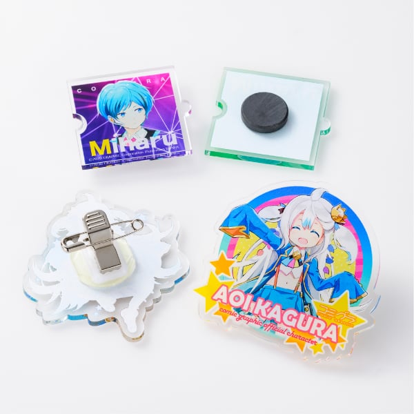 お気に入りのイラストや作品でのオリジナルグッズ作成やノベルティに最適なアクリルバッジです。裏面は安全ピンとクリップが一体となった「クリップタイプ」と、丸形のマグネットがついた「マグネットタイプ」をご用意。