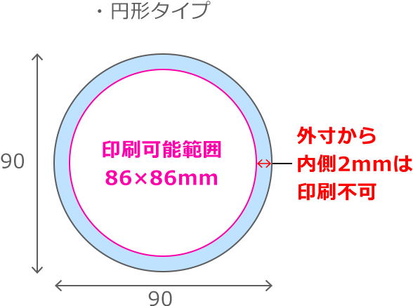 ※外寸から内側2mmは、印刷ができない仕様になります。