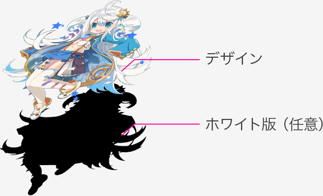 入稿時にはデザイン、ホワイト版(任意)データがそれぞれ必要となります。