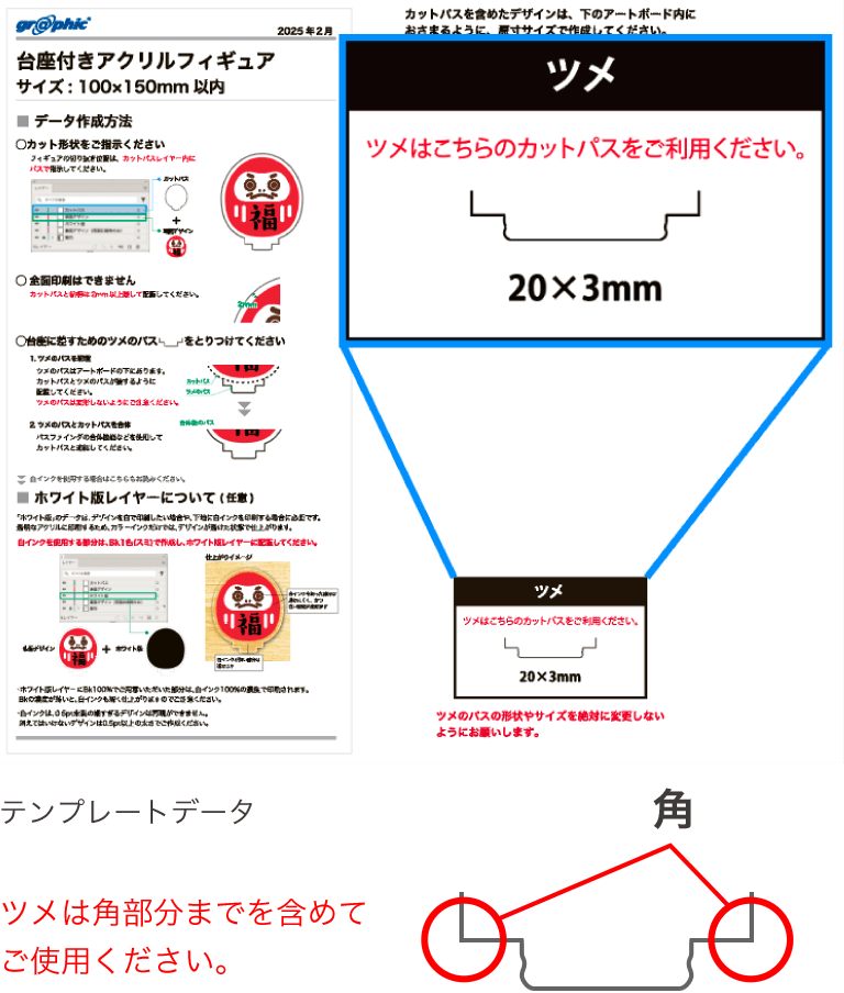 必ず台座付きアクリルフィギュア指定のテンプレートをご利用ください。