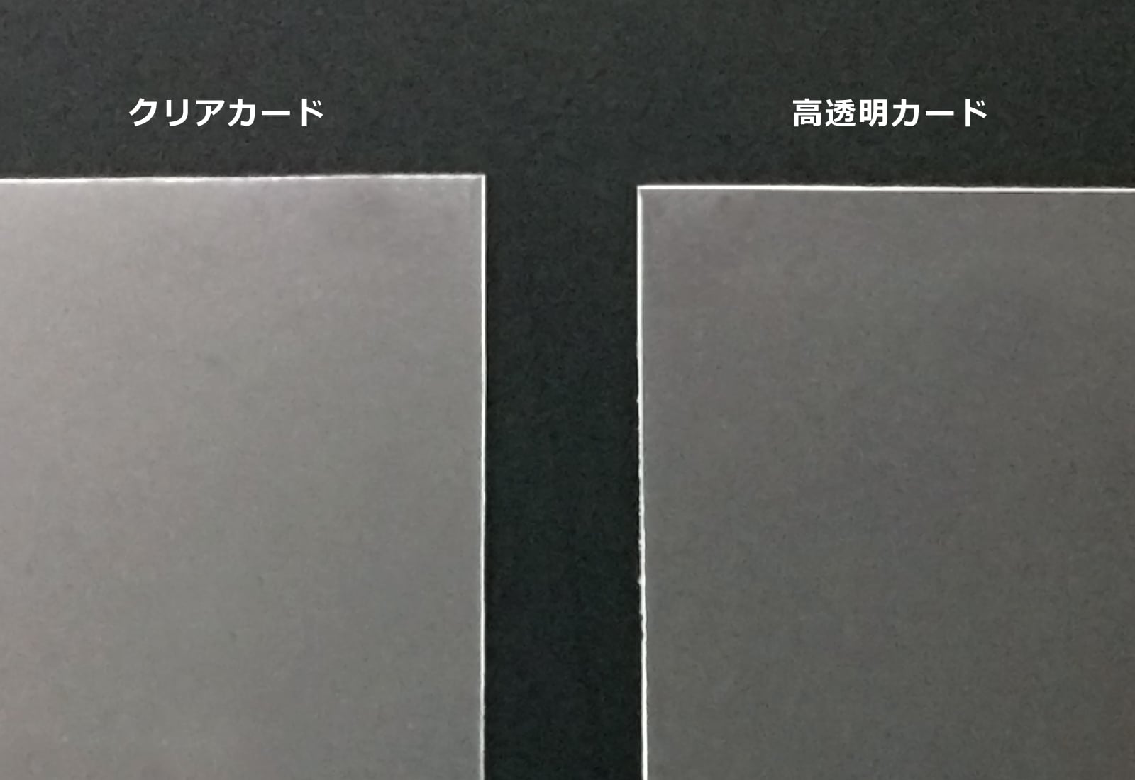 | 素材 | PP(ポリプロピレン)シート/0.2mm厚 [クリアカード] PP(ポリプロピレン)シート/0.2mm厚 [高透明カード] 高透明カード(オンデマンド)は、製造の都合上、印刷面の逆(ベース面)に少しキズが入ります。 |