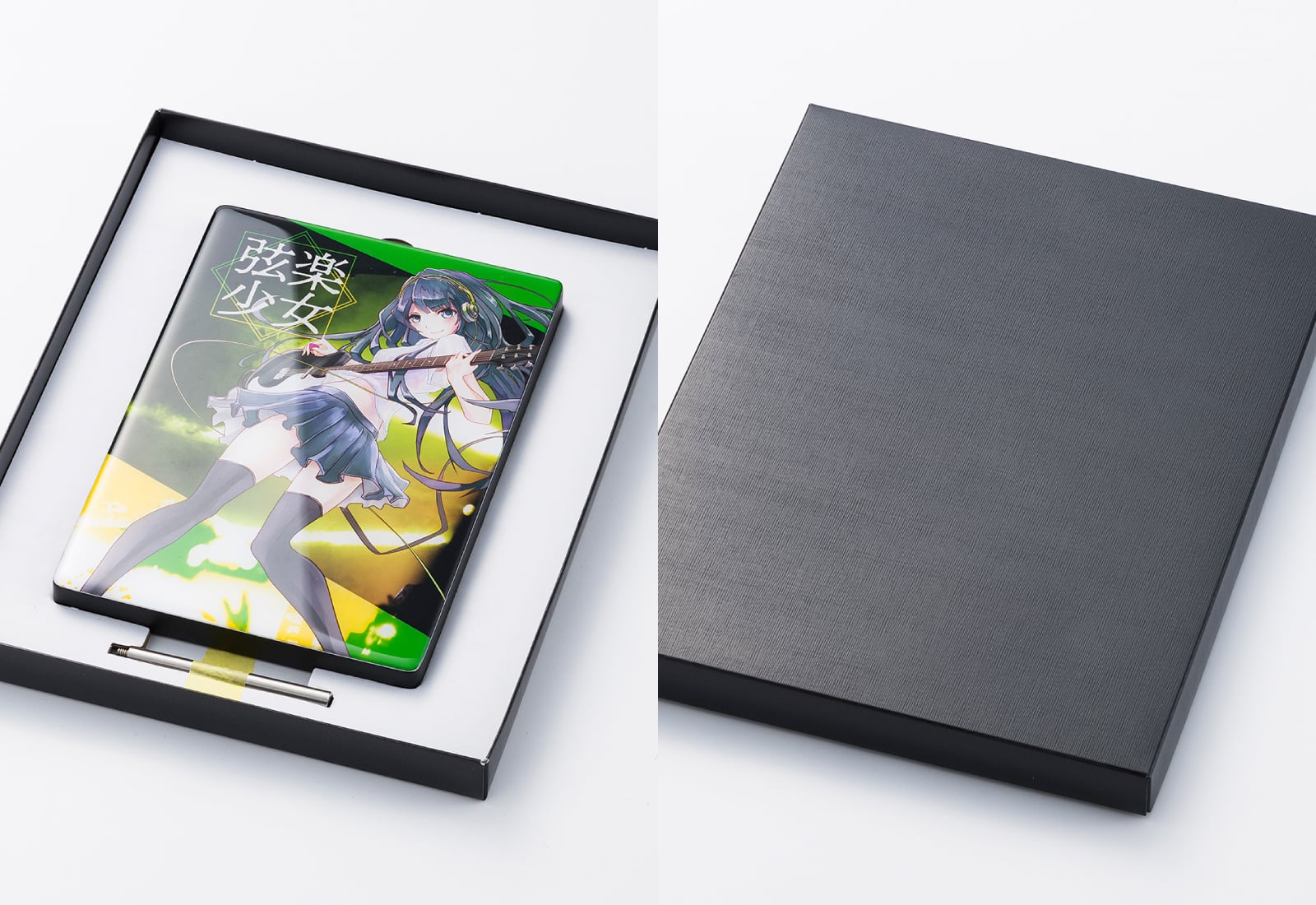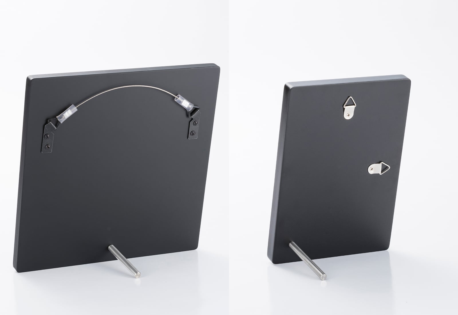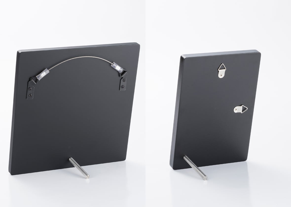 自立スタンドと壁掛けワイヤーもついていて、お部屋にシンプルにかっこよく飾っていただけます。また、専用化粧箱付きで贈り物にも最適です。