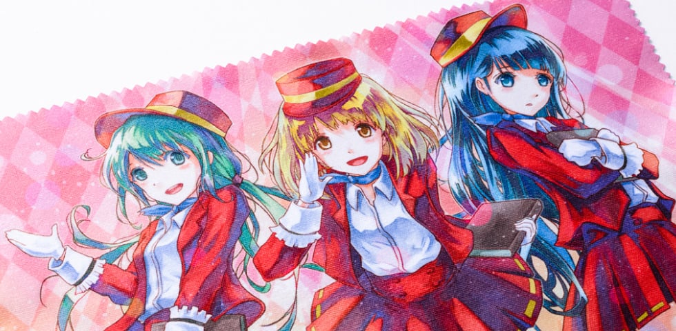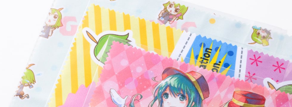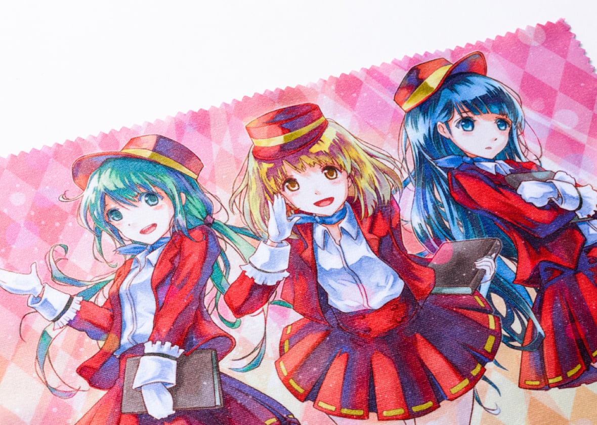 昇華転写の綺麗な印刷はイラストや写真のアピールにもうってつけ。めがね拭き・スマートフォンクリーナーに使え、実用的な同人グッズとしておすすめの商品です。