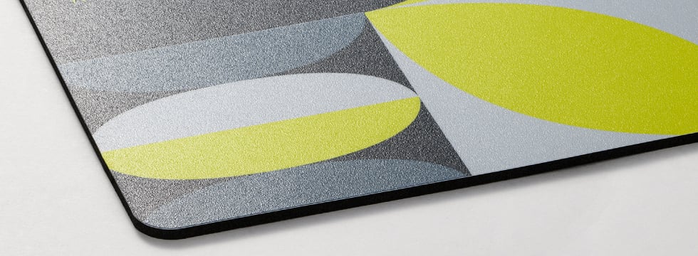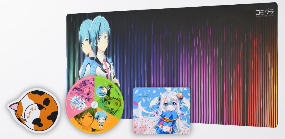 最大90×30cmの全面フルカラー印刷可能なマウスパッドです。カット形状も自由にデザインできます。マウスの滑りを良くする表面処理に加え、裏地には1mm厚のゴム素材と3mm厚スポンジの2タイプをご用意しました。