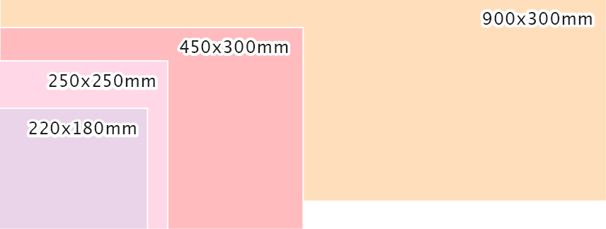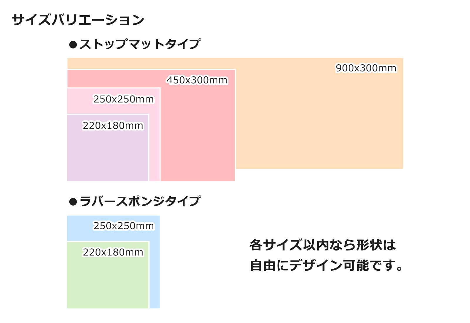 最大サイズはストップマットタイプ(裏地:ゴム素材)で900×300mmです。