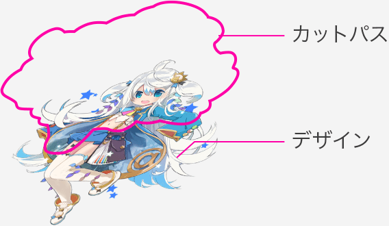 入稿時にはデザイン、カットパスデータがそれぞれ必要となります。