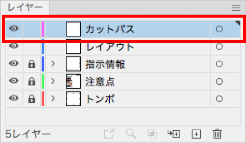 「デザイン」「カットパス」は必ずレイヤーに分けて入稿データを作成してください。