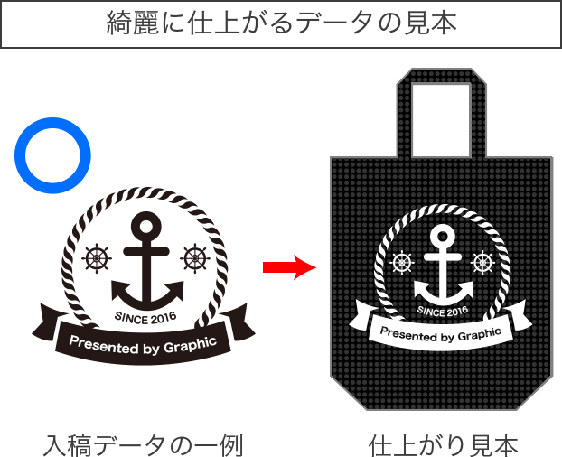 シルクプリントの特性上、1mm以下のデータは再現できません。また、仕上がりはデータより太く印刷されやすいため、文字潰れやブロック間の潰れを防ぐためにデザインのすき間は1mm以上のゆとりを持たせてください。