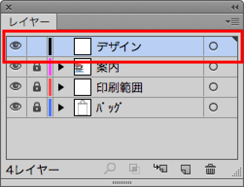 「デザイン」レイヤーにデザインを配置します。デザインは1色プリントとなりますので、必ず黒ベタ(ブラック:100%)で作成してください。また、線の太さ、点の大きさは1mm以上で作成ください。