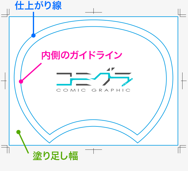 切れては困る文字やロゴは、この線より内側に配置してください。