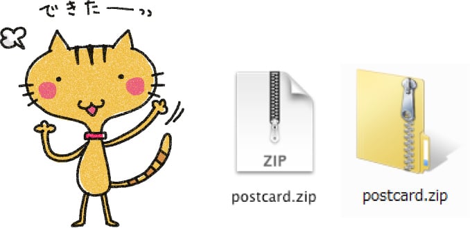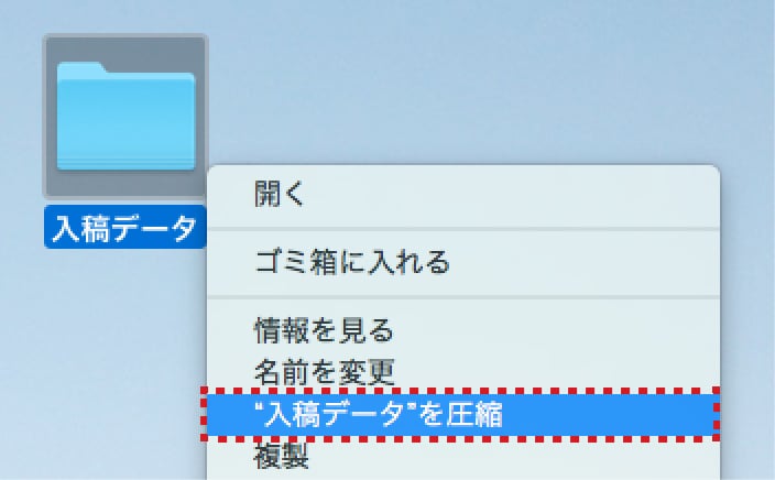 2「“入稿データ”を圧縮」を選択すると、フォルダが圧縮されZIPファイルができあがります。