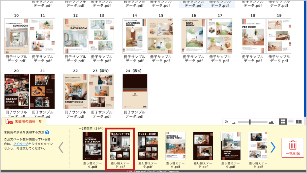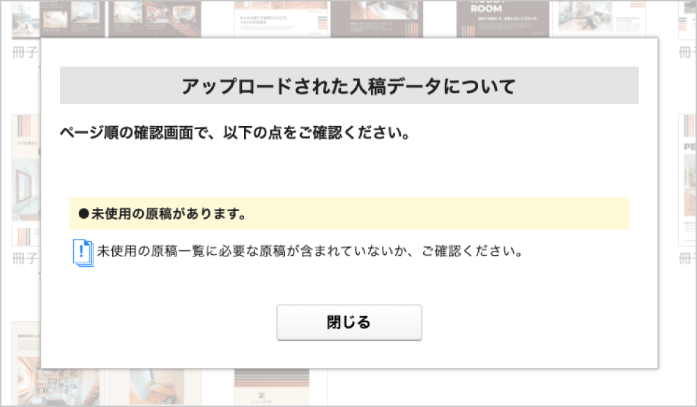 閉じる注文ページ数より原稿が多い(未使用の原稿がある)