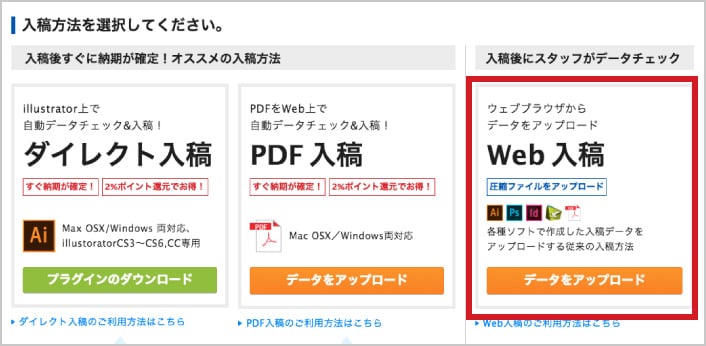 3「入稿方法」から「Web入稿」を選択します。