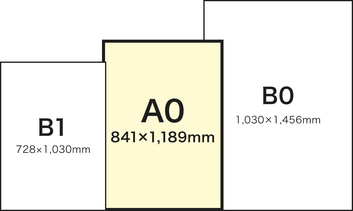 A0に近いサイズとしては、B0(1,030mm×1,456mm)、B1(728mm×1,030mm)があります。