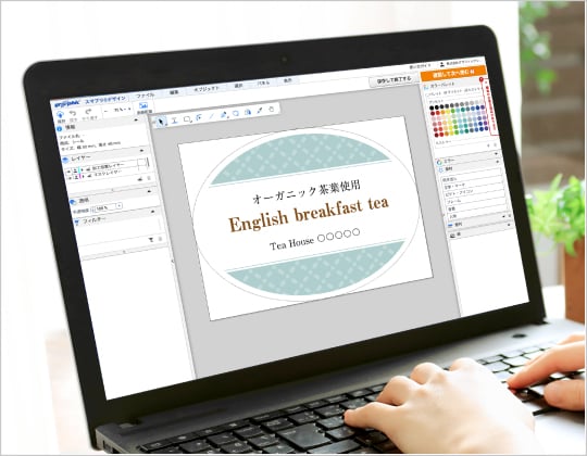 なお、当社では、アプリケーション不要でラベルシールのデザインを作成できるデザインテンプレートもご用意しています。デザインの作成が難しい場合などはぜひご利用くださいませ。