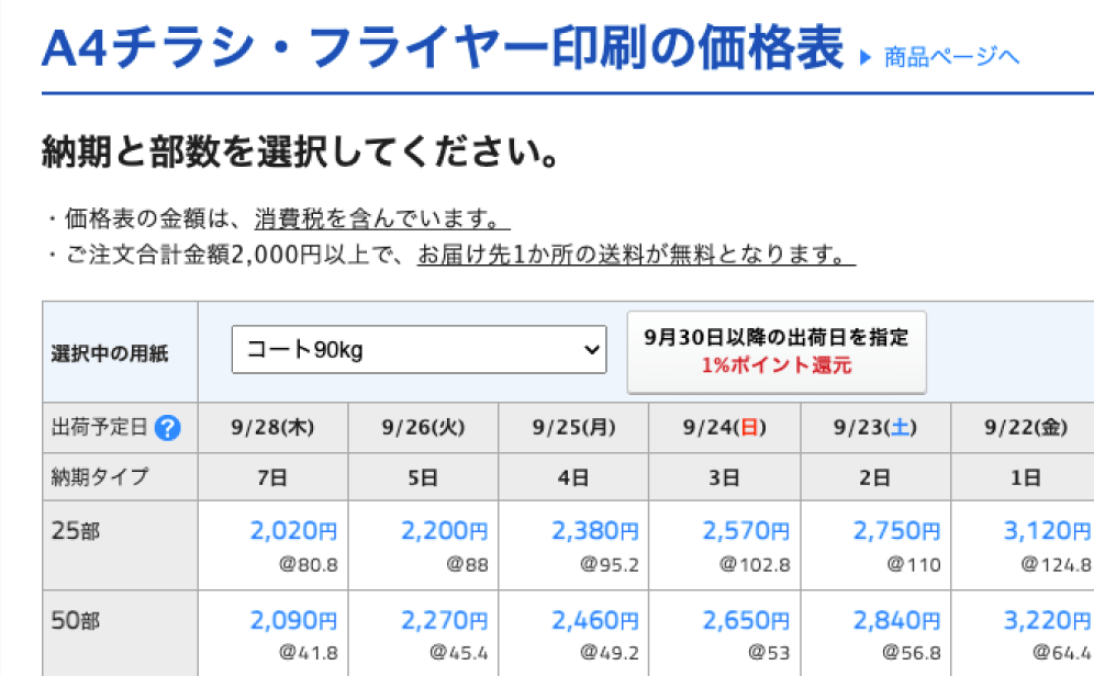 また、一般的には納期が長くなるほど料金が安くなるため、スケジュールに余裕のある印刷物なら費用をさらに安く抑えるという使い方もできます。