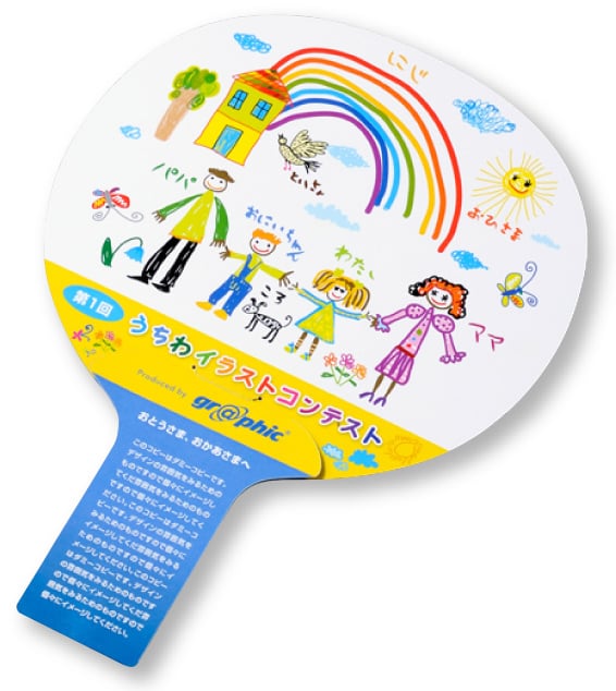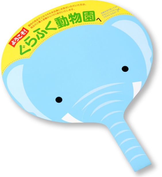 使った後に切り抜いてペーパークラフトやキャラクターグッズが作れるうちわは、お子様に大人気。使い捨てられることがないノベルティグッズです。