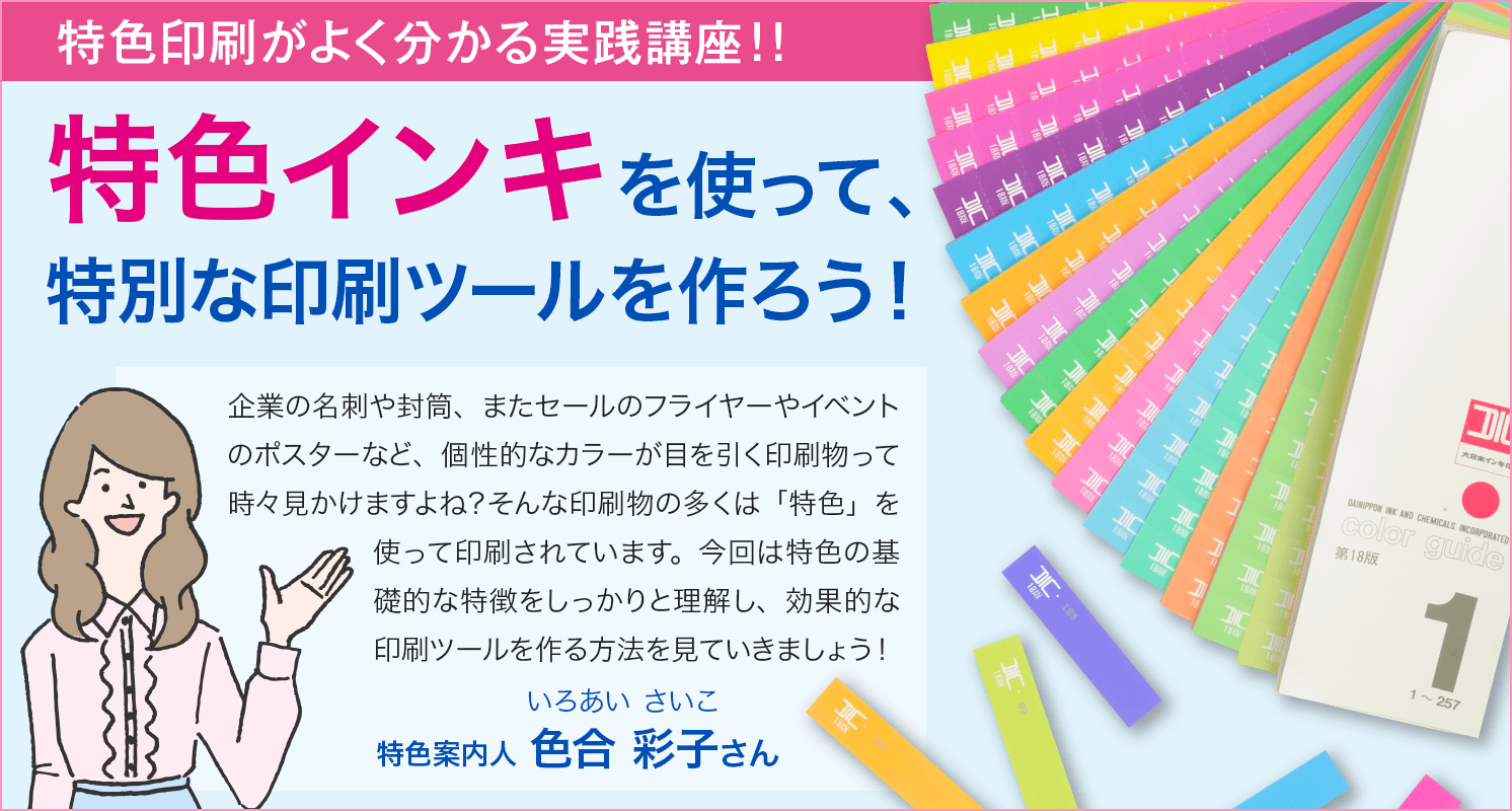 日頃、特色印刷を使用する機会が少なく「データの色指定はどうやってすればいいの?」「印刷するのはどんな紙がいいの?」と迷う人も多いのではないでしょうか?そこで、色指定の仕方や紙選びのポイントもしっかり押さえておきましょう!