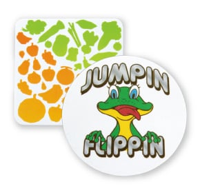 円型と角型、花型、樽型、六角型の5タイプをご用意しています。テーブルに置くだけで目を引く、オリジナルコースターを作ってみませんか?