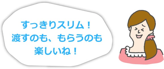 スリムで軽量なので持ち運び、受け渡しに便利。素敵なプレゼントになるでしょう。