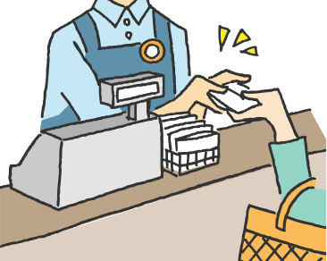 レジで会計時に手渡し。確実に受けとってもらえる手法です。