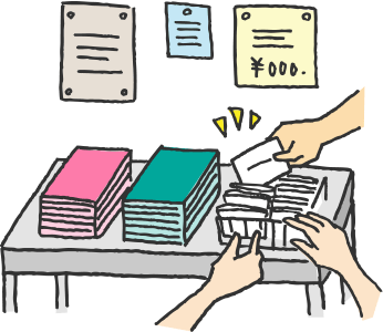 前の人が受け取っていると、次の方もなんとなく流れで受け取りたくなります。テンポよく配布しましょう。