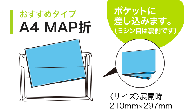 しっかりと情報を掲載した両面印刷のチラシを折り込んで封入。チラシ単独で配布するよりも高い確率で受け取ってもらうことが可能です。