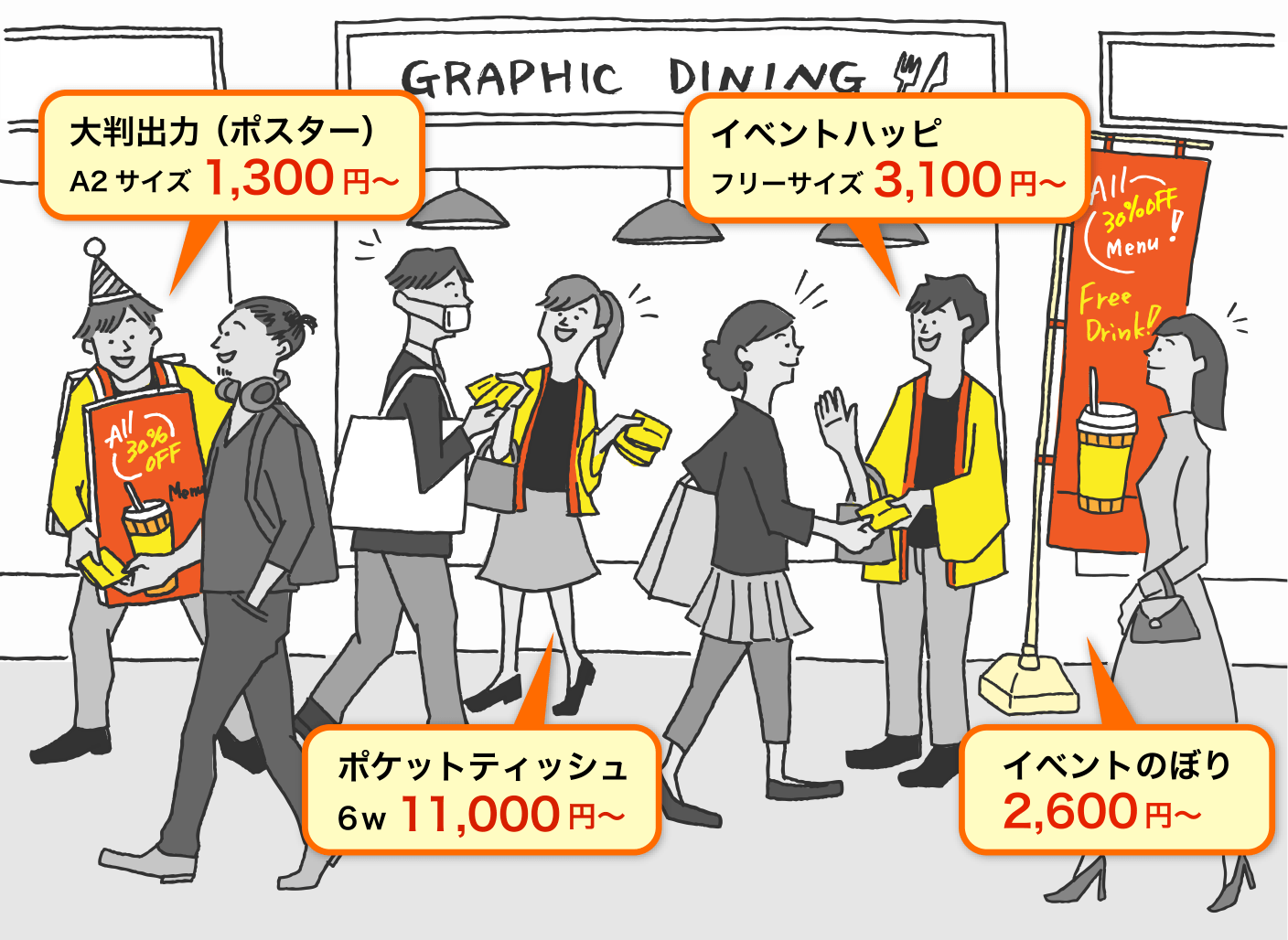 イベント会場や街頭配布だけでなく、ポスト投函や店頭でのプレゼントなど、さまざまな配布方法でアピールしましょう!