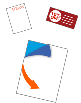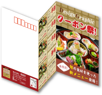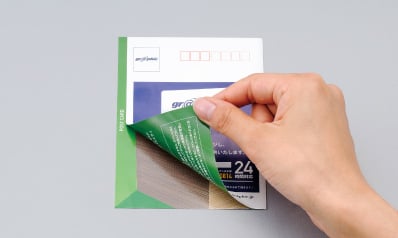 サービス案内やアンケートなど、たくさんの情報をローコスト&コンパクトに送付可能。お客様の手元に届いた時、隠れている中身を開けて見たくなるという心理的効果があり、通常のダイレクトメールよりも高い開封率が期待できます。折られたはがき面を切り離して、返信用ハガキやチケットとしても活用できます。