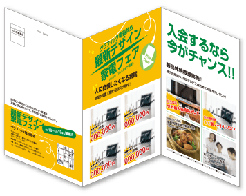 V折り(2つ折)なら情報量がはがきの3倍、Z折りなら5倍の情報を掲載して送れます。