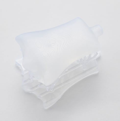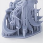 アクリル系樹脂にUV光を照射して硬化させる光造形方式です。積層痕の目立たない精密な造形が可能です。精密なモックアップ、フィギュアの原型製作に最適。造形物にはサポート材(支持体)がつきますので、後加工が必要です。