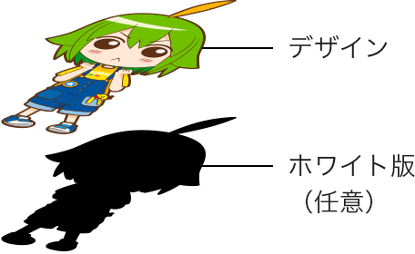 「ホワイト版」レイヤーは、白いデザインを印刷したい場合や、下地に白インクを印刷する場合にご利用ください。