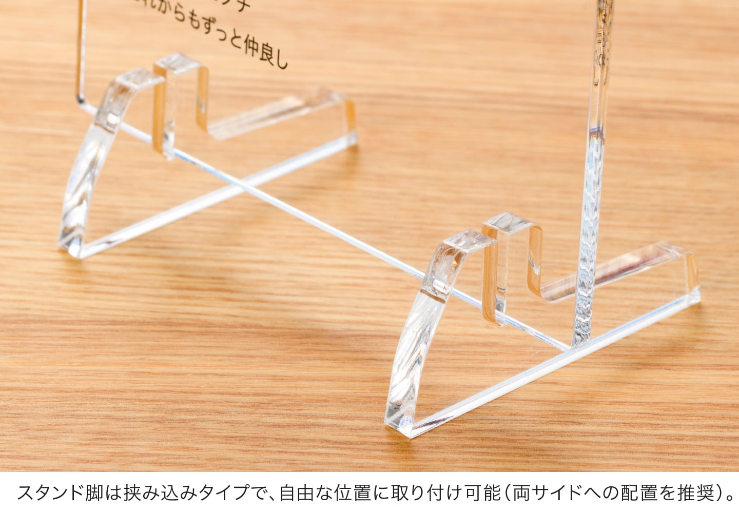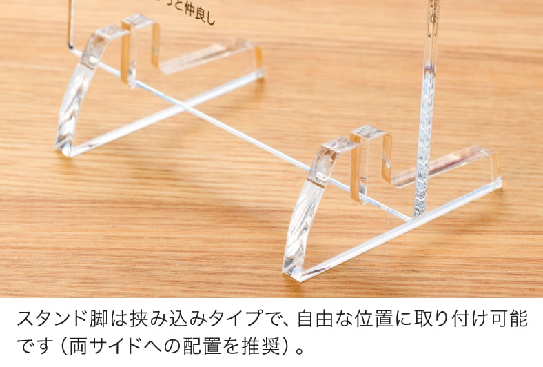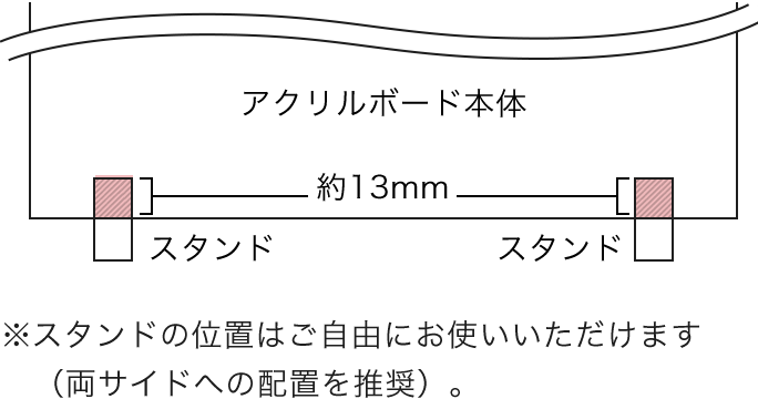 アクリルボード本体をスタンド脚に挟み込む際、約13mm程度の深さがあります。