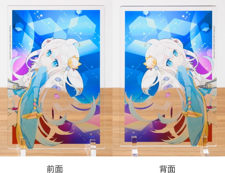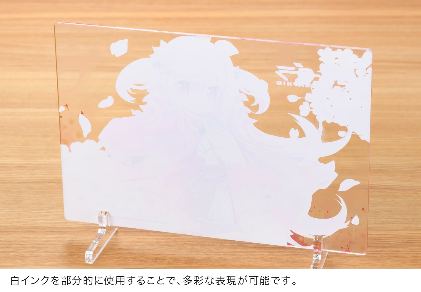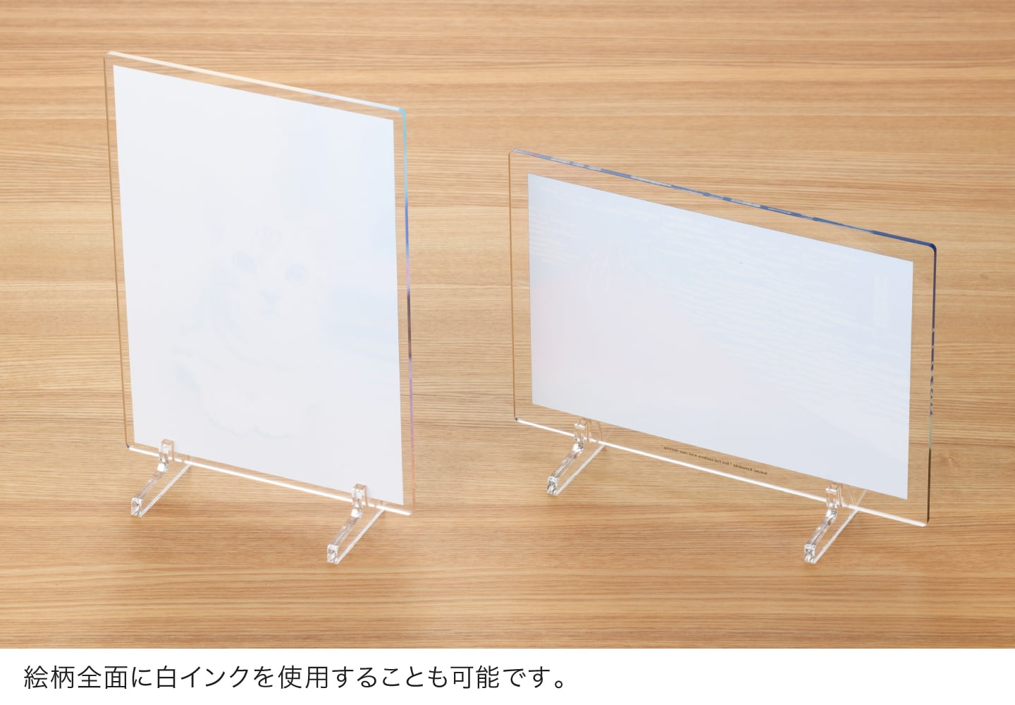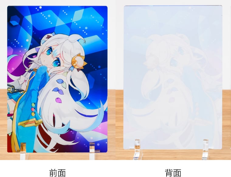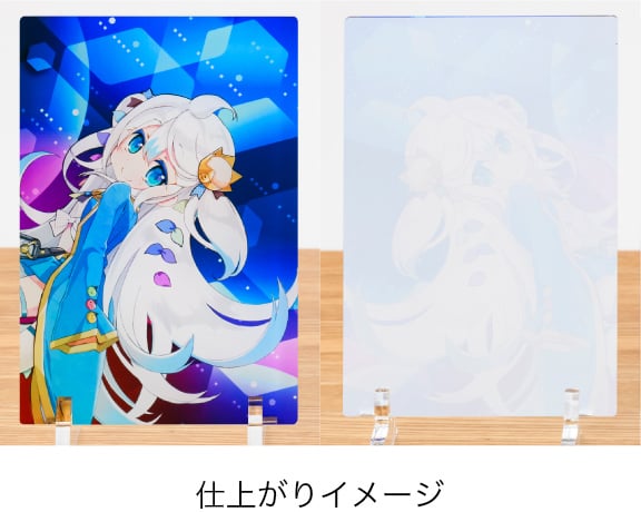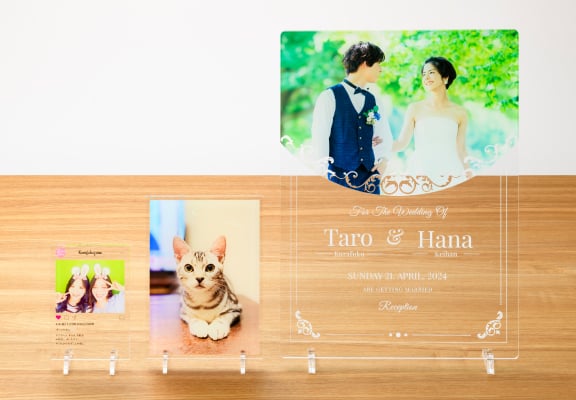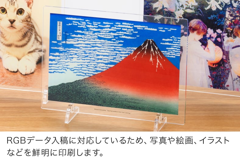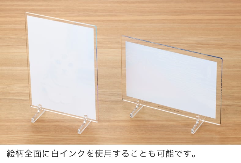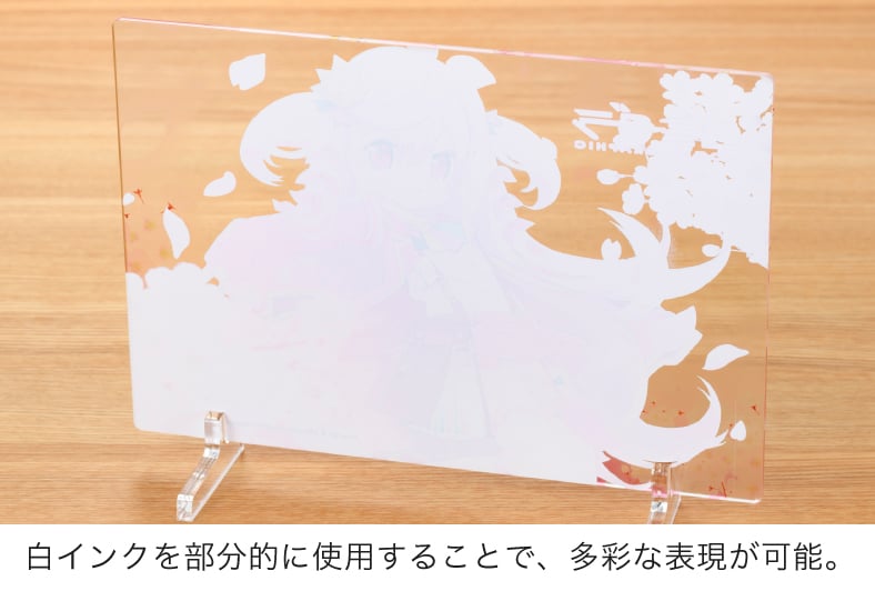アクリルプレートならではの光沢のある透明素材に、高画質な7色印刷でプリント。