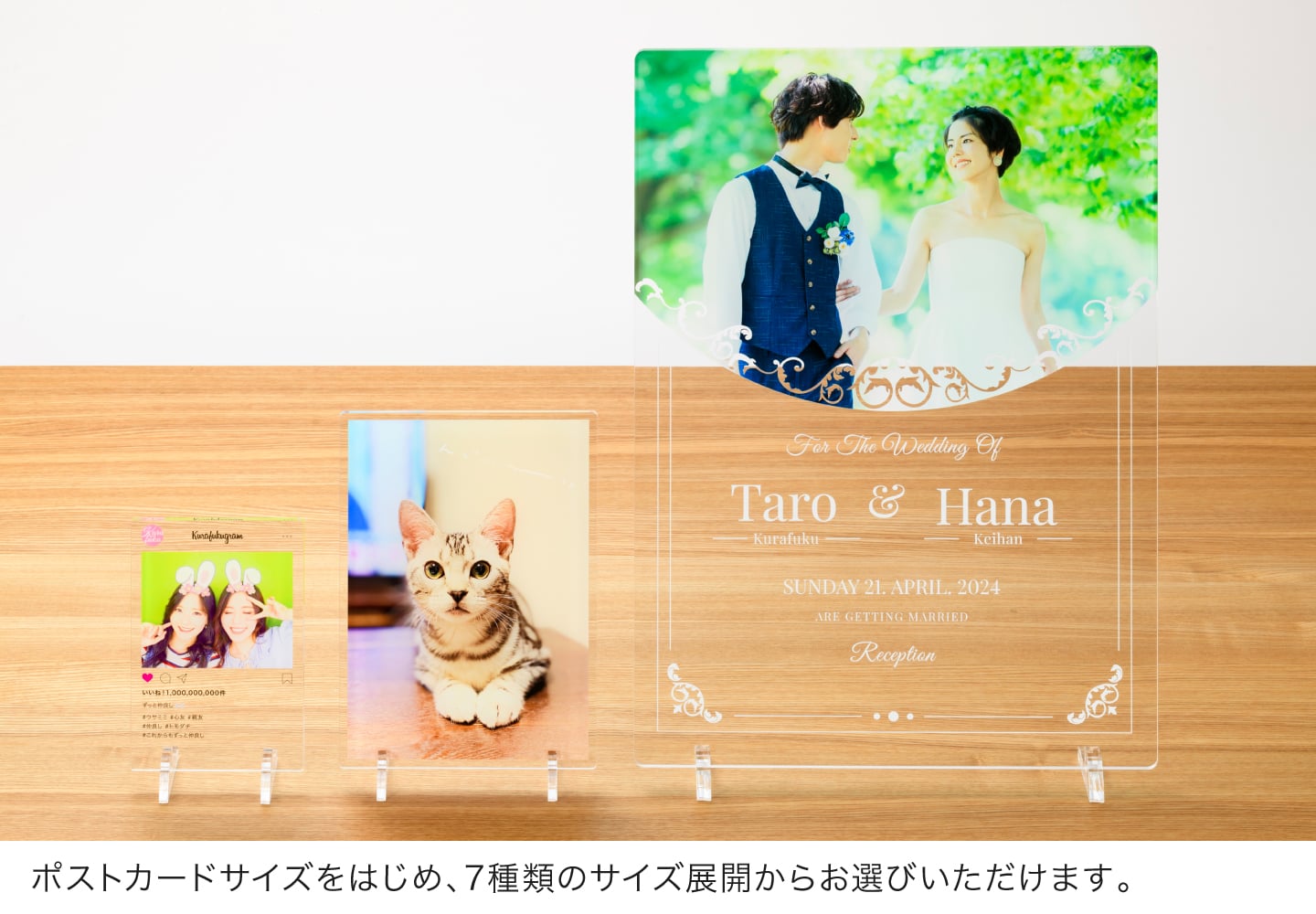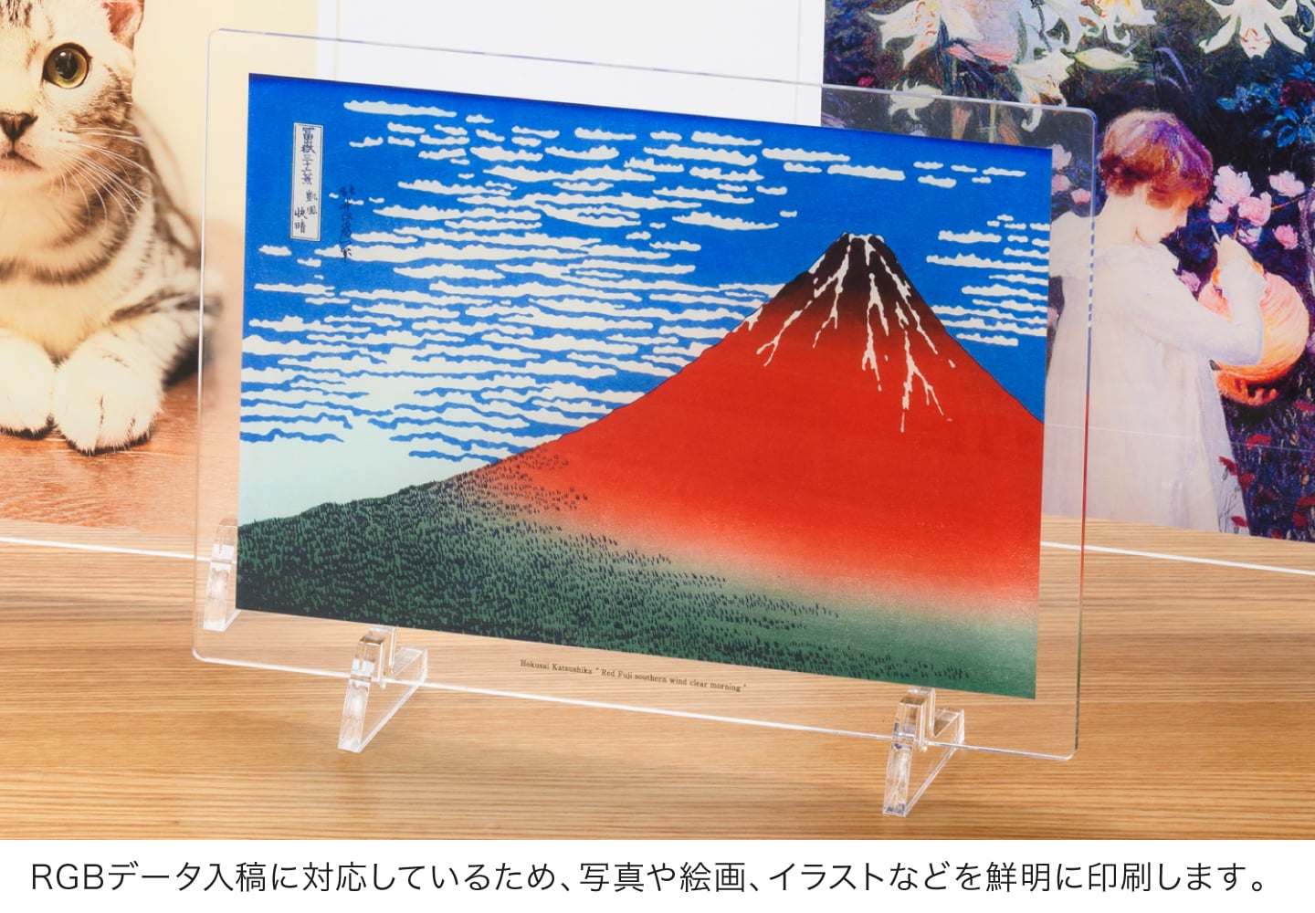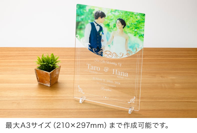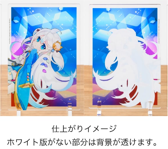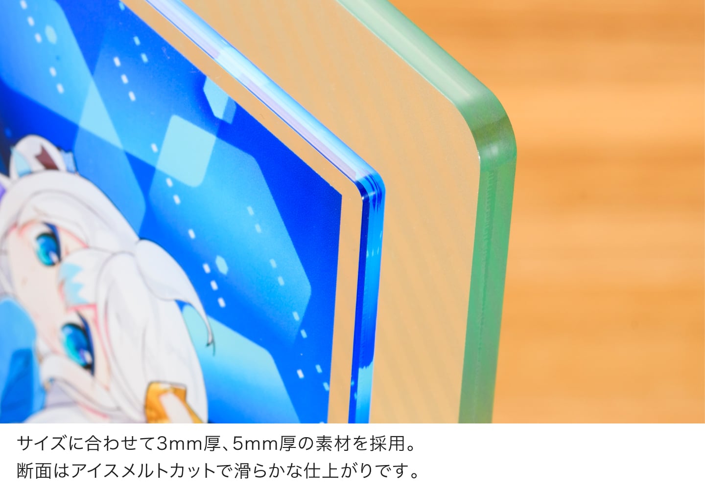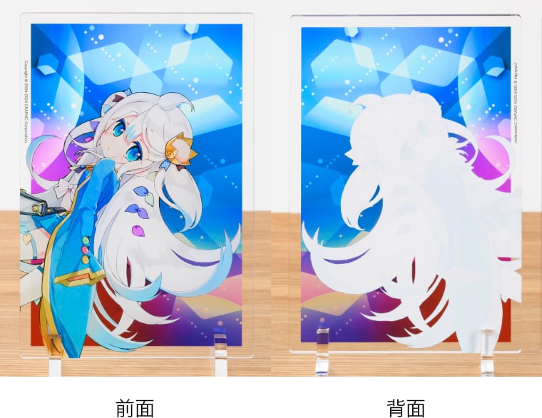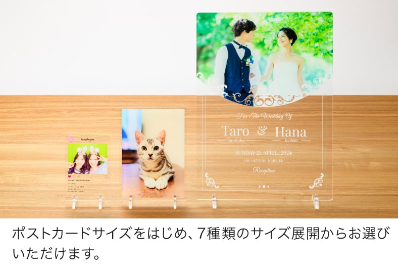 アクリルプレートならではの光沢のある透明素材に、高画質な7色印刷でプリント。