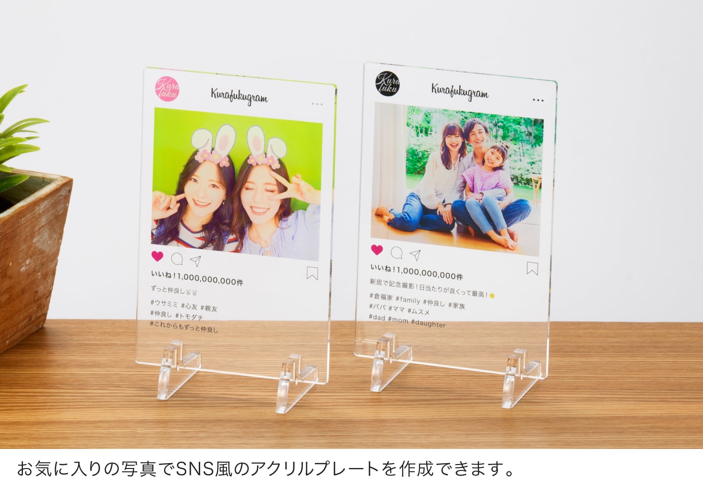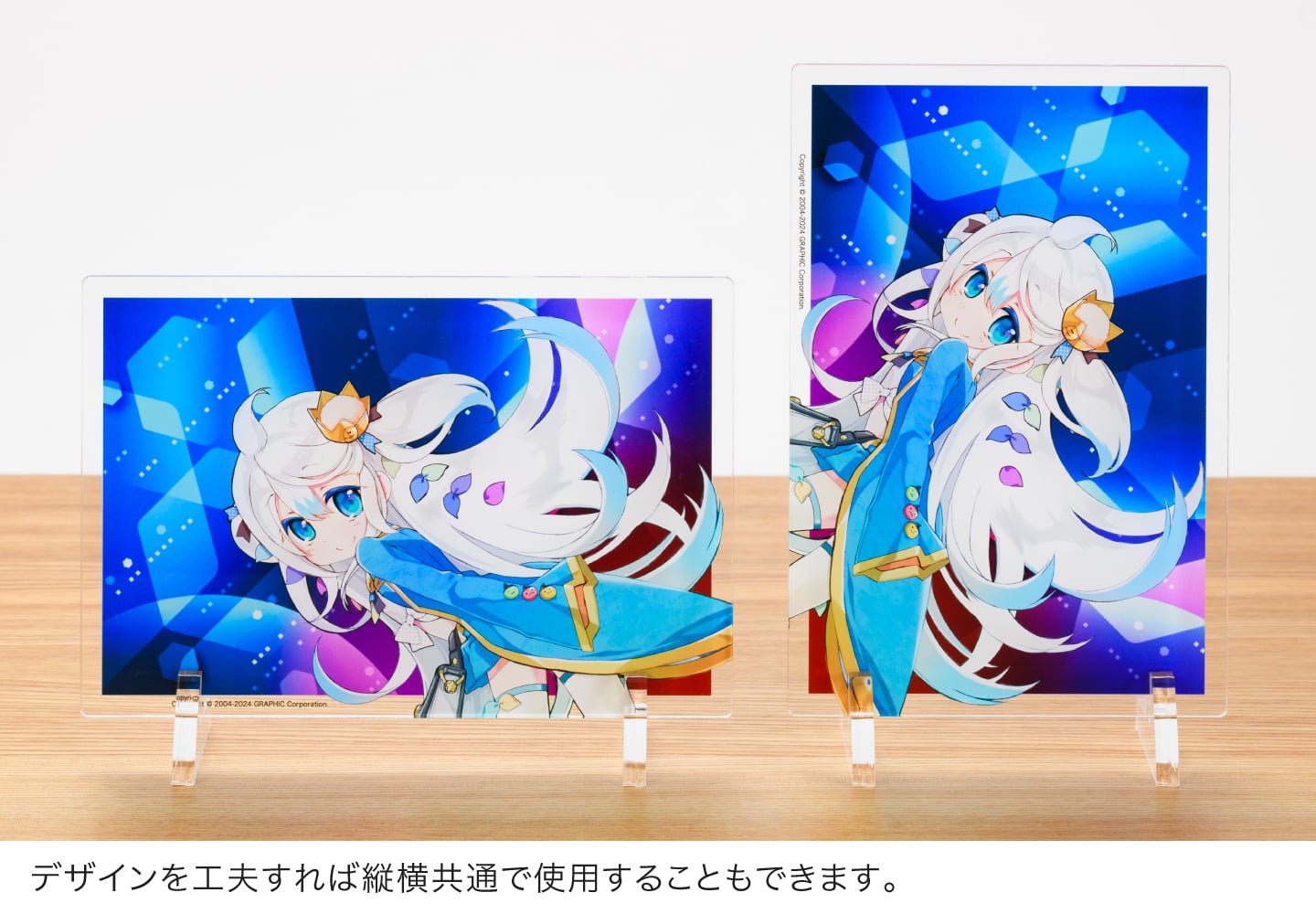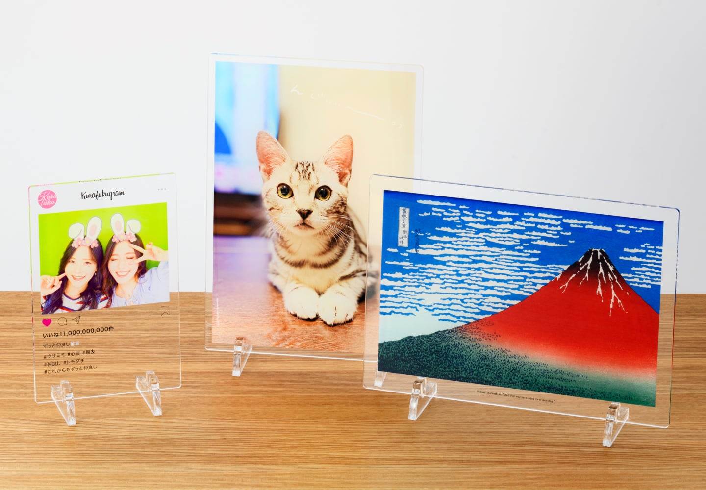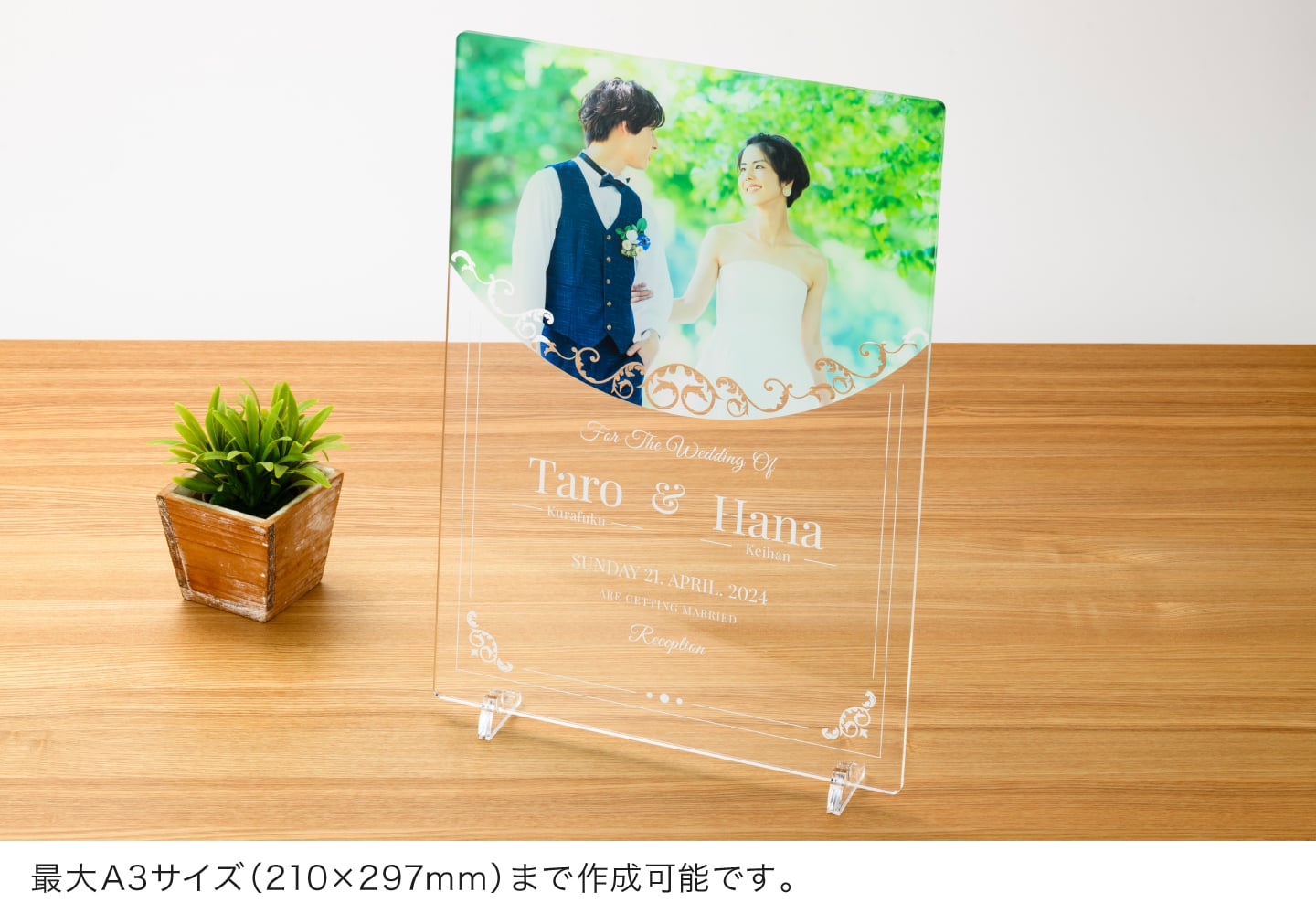 アクリルプレートならではの光沢のある透明素材に、高画質な7色印刷でプリント。