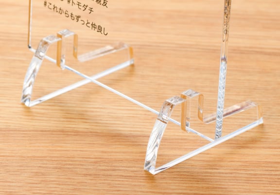 お気に入りのイラストや写真を飾るのにぴったりなアクリル製の卓上スタンドです。