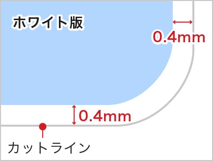 納品時の品質保護の観点から、ホワイト版のみ、カットラインより0.4mmほど内側に印刷いたします。