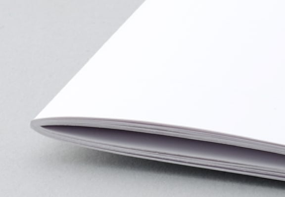 ホッチキスで背をとめるタイプの冊子。ページ数の少ない冊子に向いています。