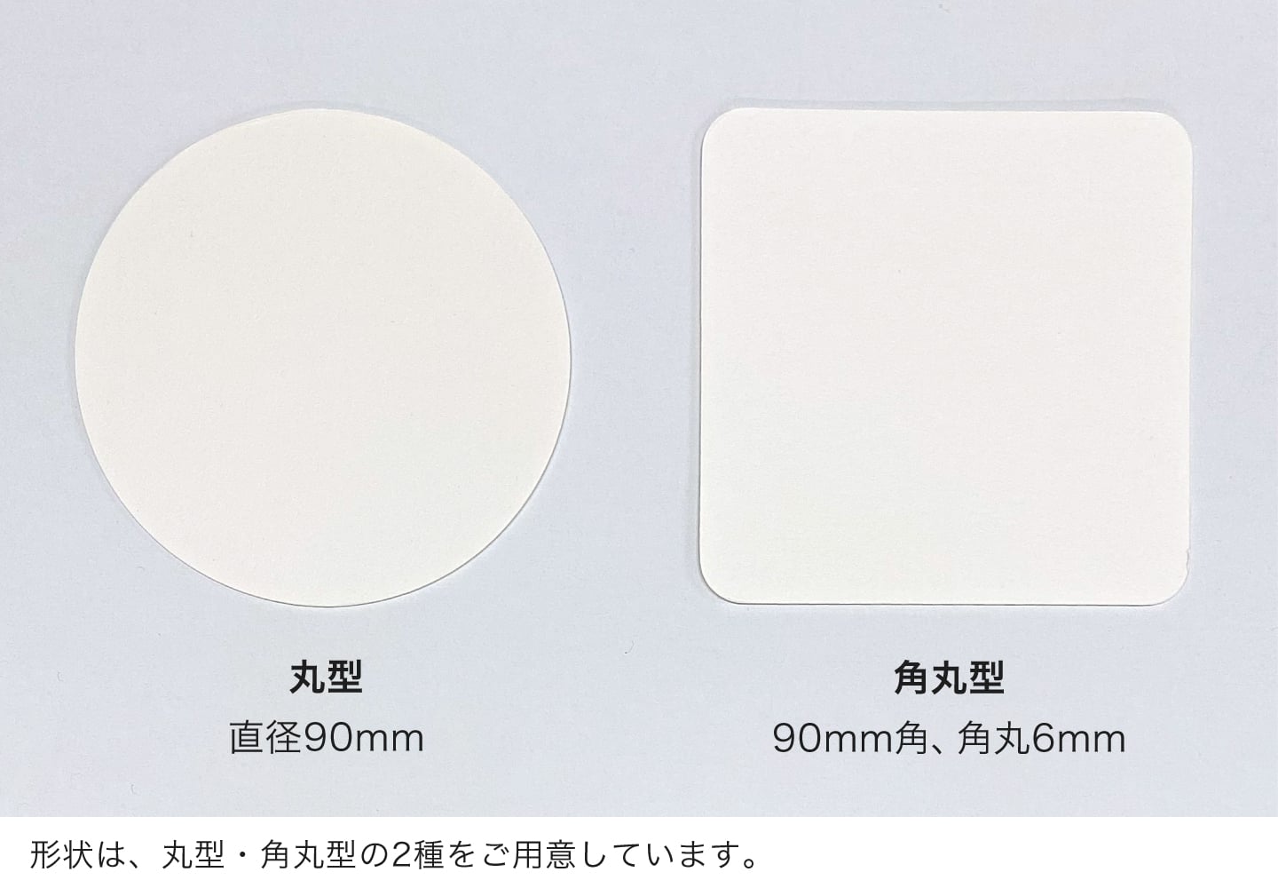 用紙は、白・青白・茶・黒の4種、形状は丸型・角丸型の2種をご用意。