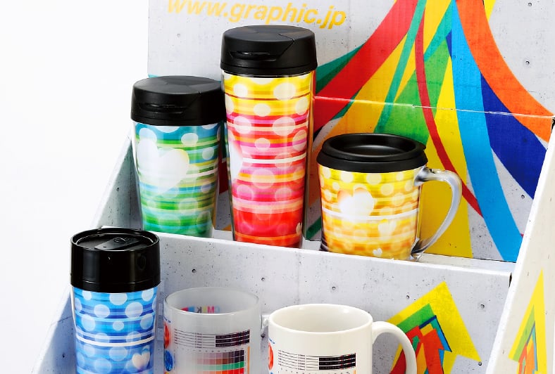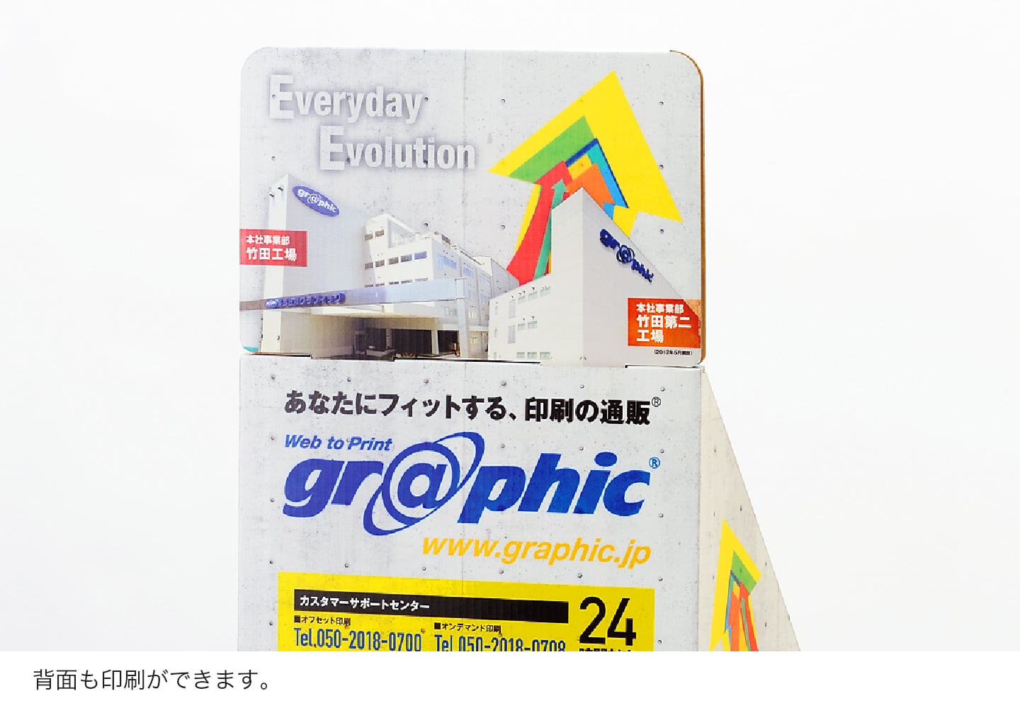 スタンドの外側全面を自由にデザインできるので、目を引くさまざまな演出が可能です。