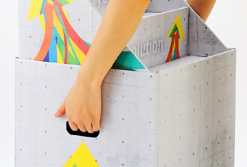 少しツヤのある白地の段ボール表面に、複雑な絵柄や写真などもきれいに印刷OK。