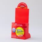 丈夫で倒れにくい構造で、テーブルやカウンターの狭いスペースにも設置することができます。組み立ては折り曲げて組み合わせるだけなので簡単。デザインできる面が広く、広告もたっぷり掲載できます。