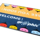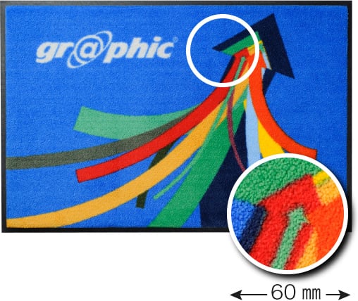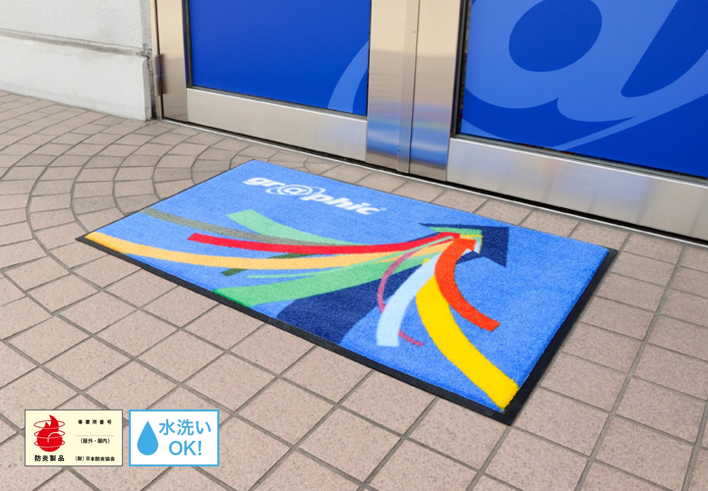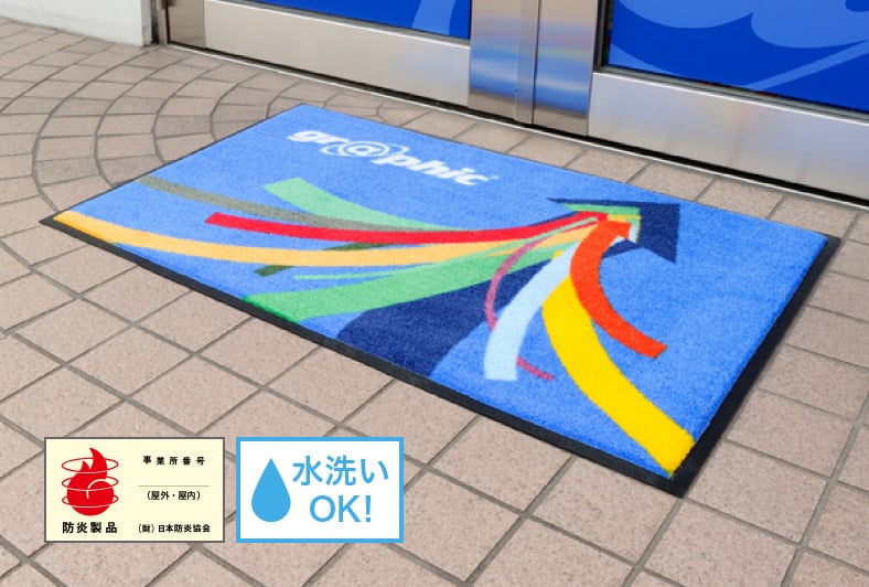 起毛マットにダイレクトプリントしますので、非常に低価格。1枚から美しいオリジナルマットがつくれます。日本防炎協会の認定商品です。(防炎ラベル付属)